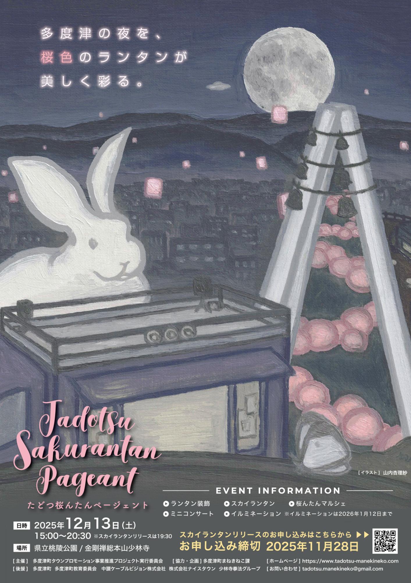 「たどつ桜んたんページェント」は、多度津町まねきねこ課が企画し、2017年度に始まったランタンイベントで、コンセプトは「多度津の冬に桜をさかせるオシャレなイベント」です。