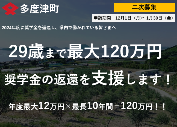 【二次募集受付中】多度津町移住・定住促進奨学金返還支援助成金