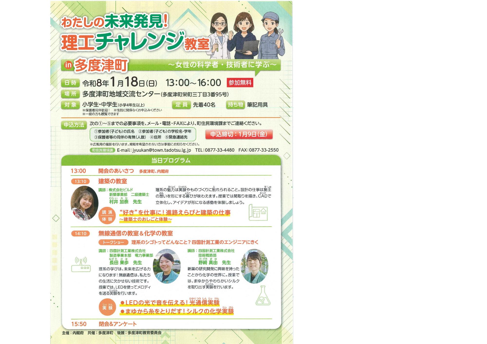 「わたしの未来発見!理工チャレンジ教室in多度津町」の開催について